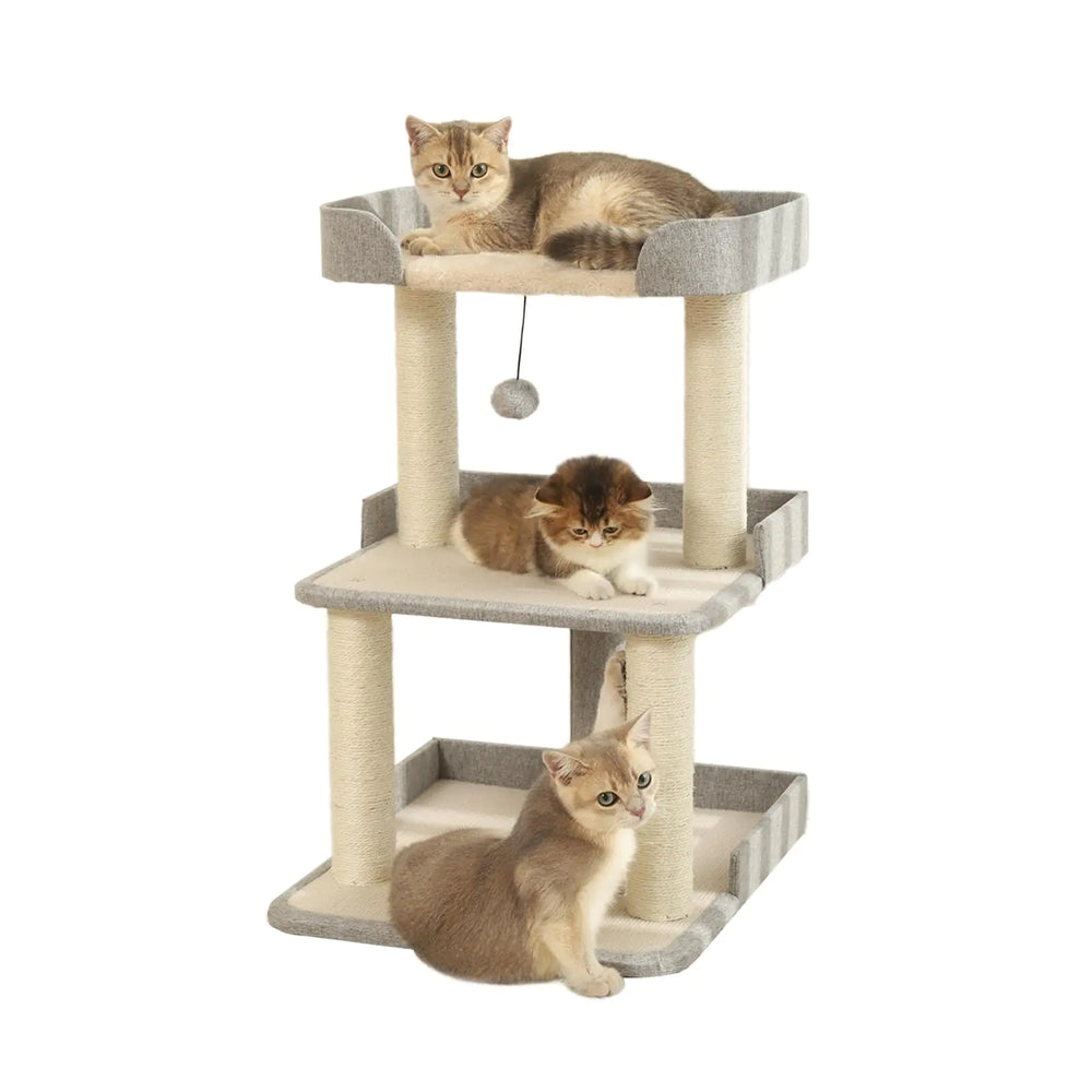 Unlike simple scratchers, this multi-level cat tree combines play, rest, and exercise in one design. Its neutral color fits seamlessly into any home decor, while its sturdy structure ensures stability even during playful leaps.