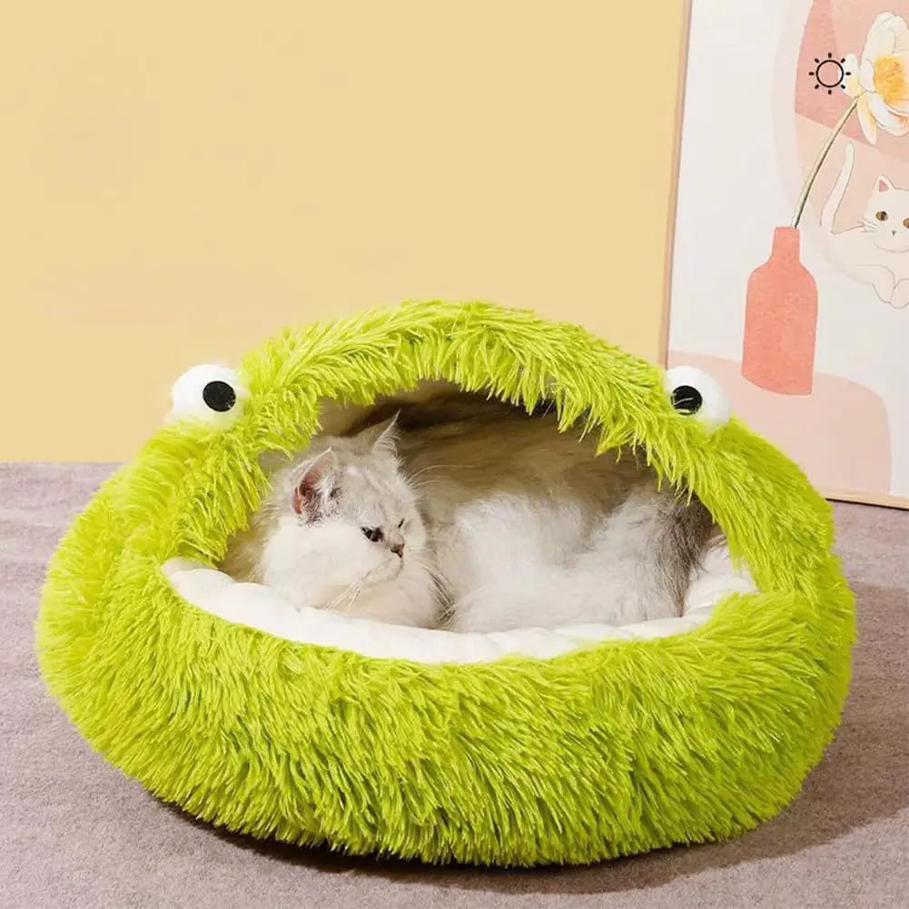 Frog Shaped Plush Cat Bed – Semi-Closed Nest for Indoor Cats