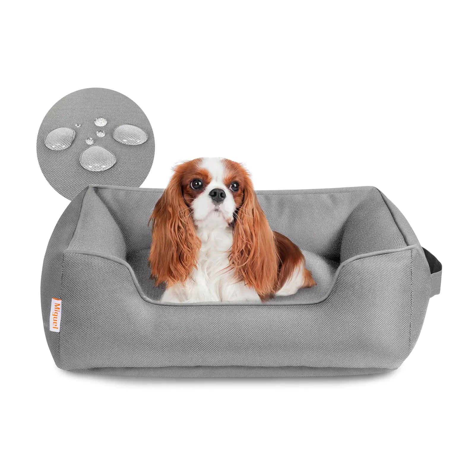 Miguel Outdoor Waterproof Cat Bed with Side Oxford Durable Dog Bed for Small Dog Easy Clean All Weather Rectangle Medium Pet Bed Bolster Tough Puppy Bed Scratch Resistant Removable Cover 25 inches