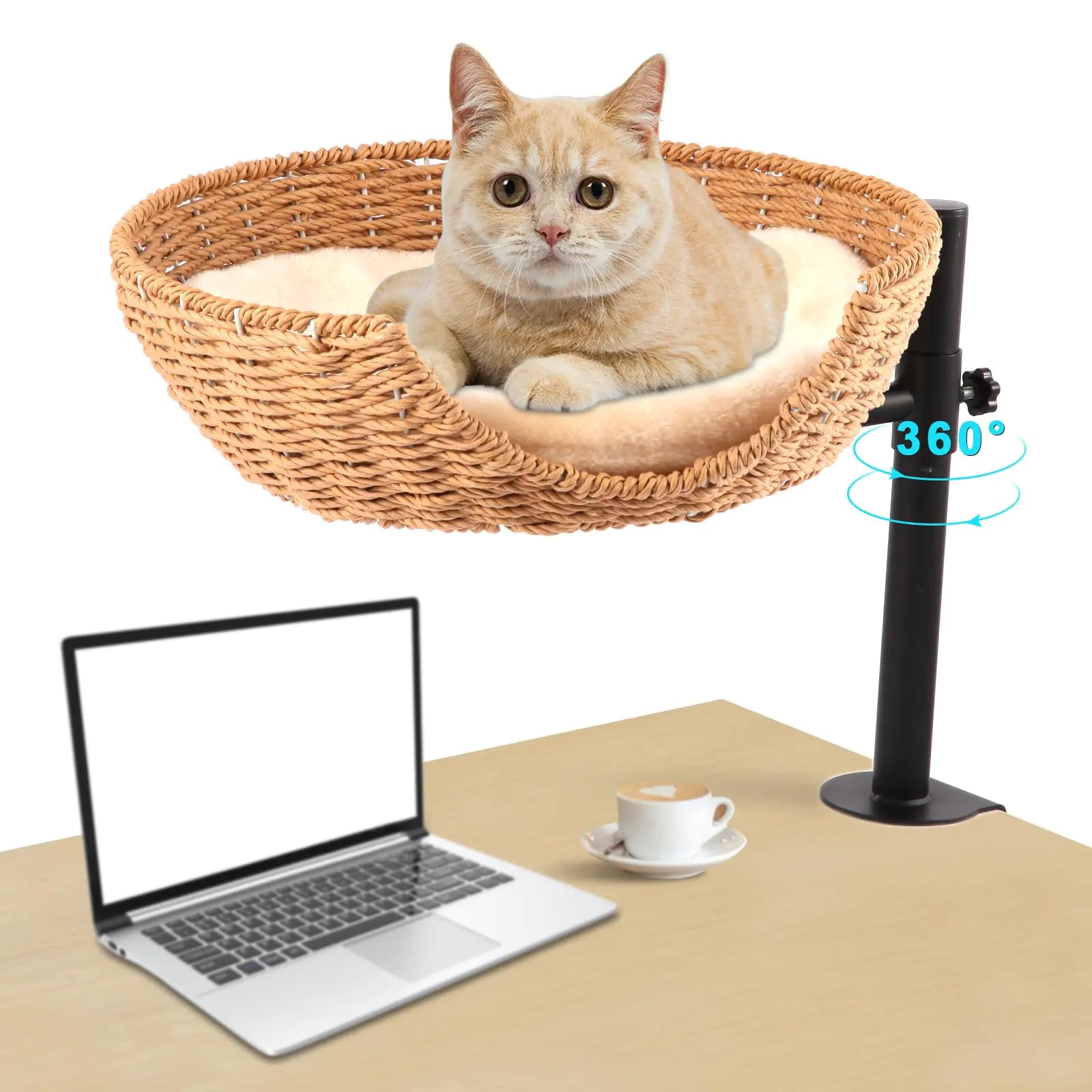 SEPAZON Cat Desk Bed Elevated Cat Nest Bed for Desk Indoor Cats Cat Hammock for Desk Window Bedside Cat Shelf Bed for Kitten Cat Furniture 360° Rotation Raised Cat Bed - Supports up to 44lbs